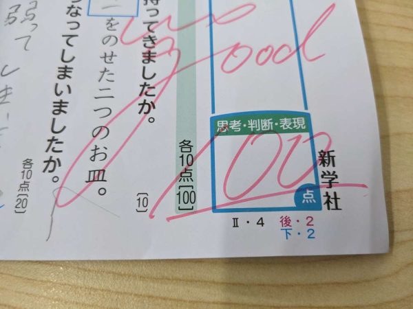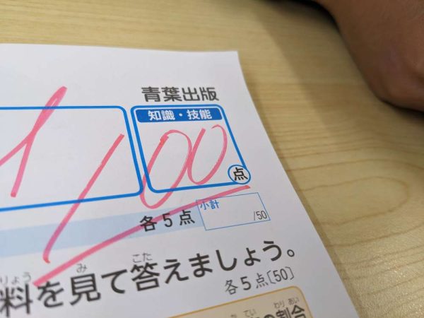 ↑小学生の生徒が100点のテストを2枚、校舎まで持ってきてくれました!よく頑張りました!