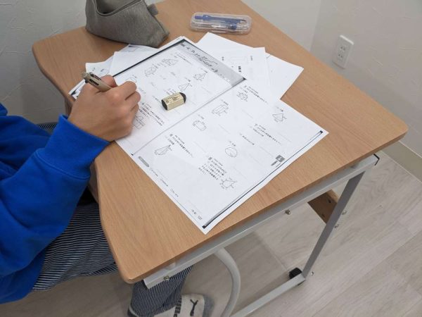 ↑学校の数学のワークを繰り返し学習で確認をしている様子です。