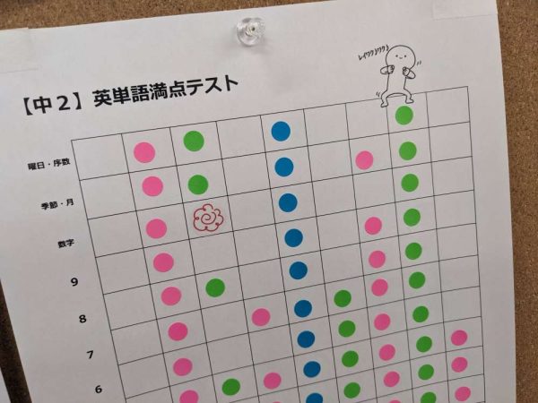 春期講習中にテントル生たちは、英単語や計算の確認テストに取組んでいました。