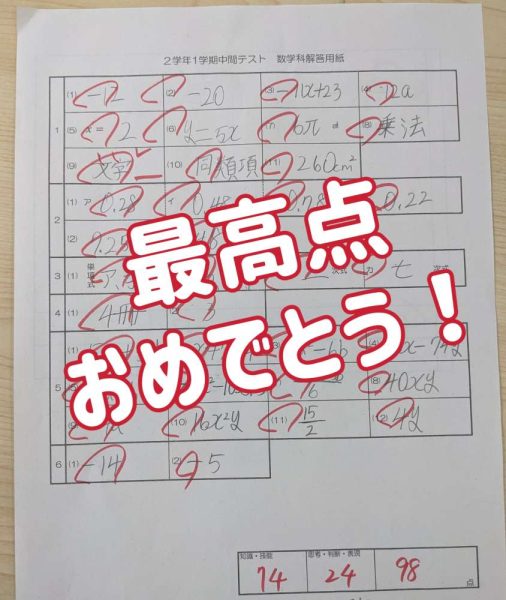 与野西中・与野東中の中間テストが終わり、結果が続々と返却されてきました。
