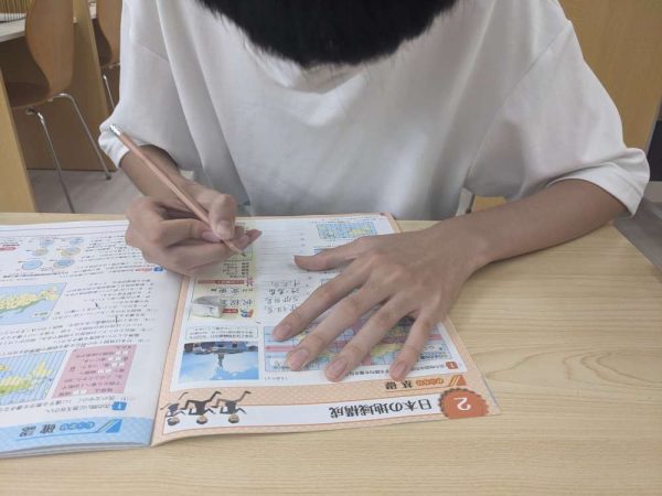 テントルでは、夏期講習中に学校の宿題のチェックも行います。