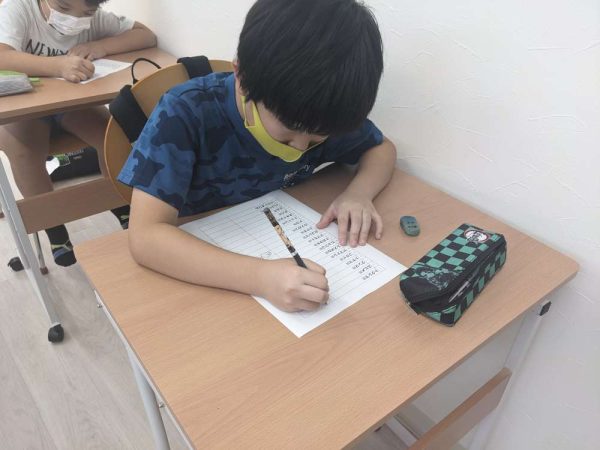 ↑小学生の漢字テストの様子です。2学期で習う漢字を先取りして練習集です!