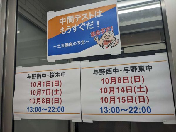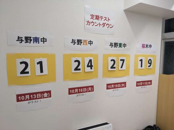 夏休みが終わりあっという間に1ケ月が過ぎ、定期テストまでのカウントダウンが始まりました。
