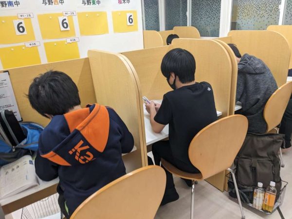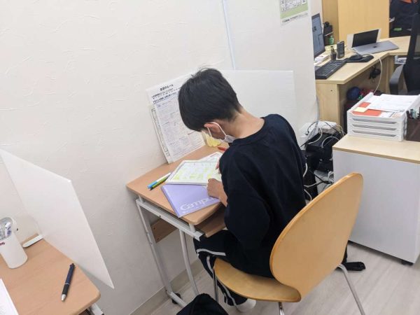 多くの生徒が自習をしに来塾しており、いち早く提出物に取り組んでいます。