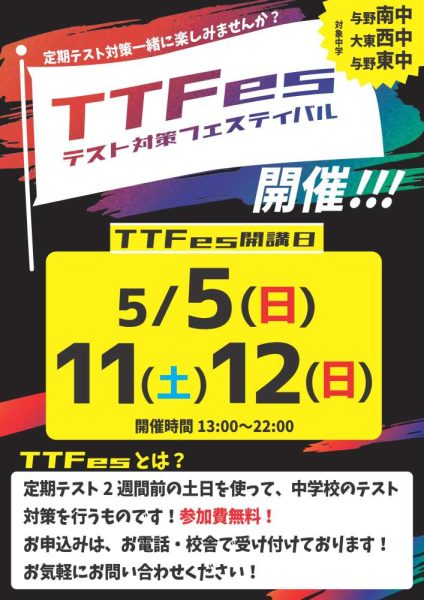 今週日曜日、初のTTフェス開催となります。講師一同、今から楽しみでワクワクしながら準備中です!!