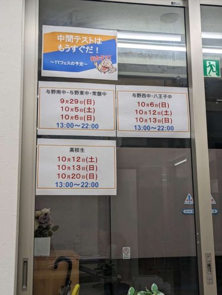 ↑テスト対策での土日開校予定です。テストまで、テントルは土日も毎日開校日です!