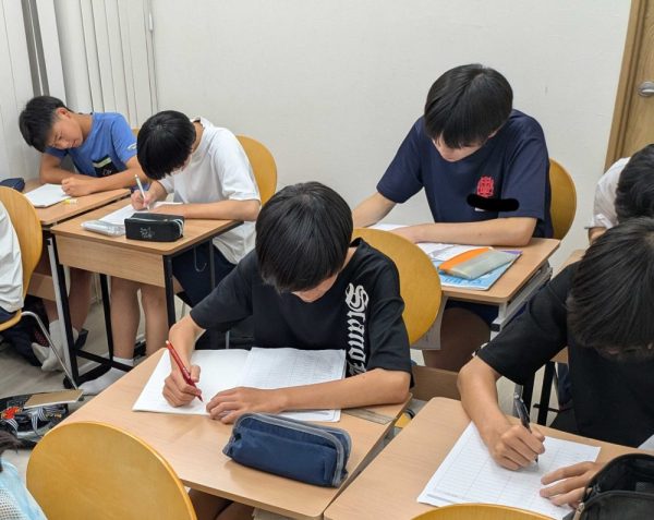 ↑夏期講習の授業中の様子です。学校生活との並行してよく頑張りました!